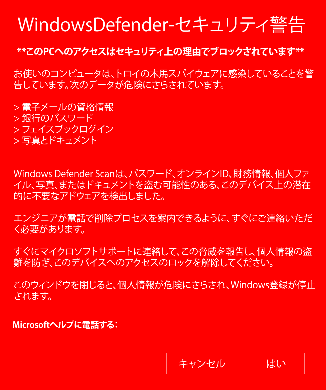 すぐに当社にご連絡く さい。当社のエンジニアが電話で削除プロセスを案内いたします。お使いのコンピュータは無効になっています。Windows Defender SmartScreen により、認識されないアプリケーションの表示が防止されました。 このアプリケーションを実行すると、コンピュータが安全でない可能性があります。 Windows サポートに電話する: (東京本社)